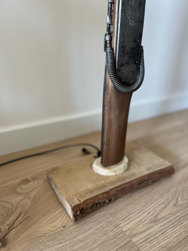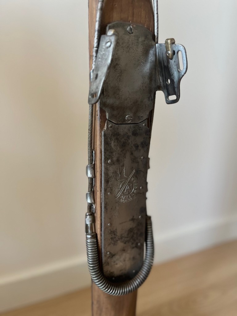Esquí de madera restaurado sobre base de roble